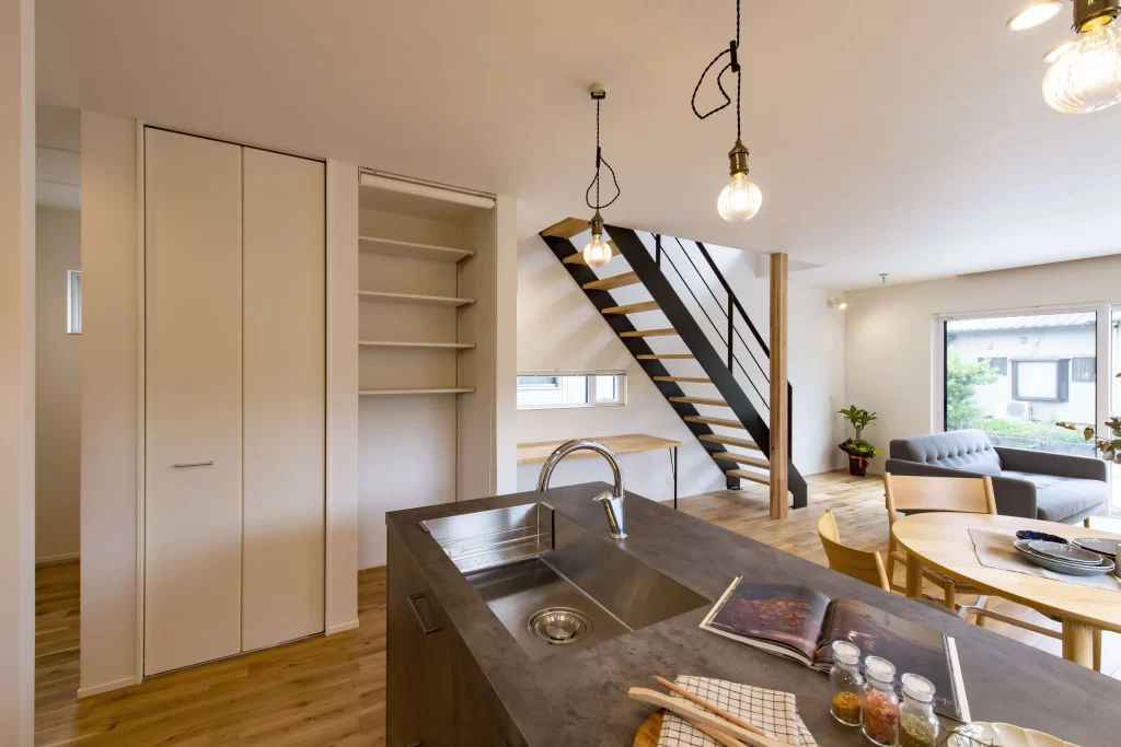 玄関→パントリー→キッチンなど、回遊できる動線は負担を減らし、家事が自然に続きます。